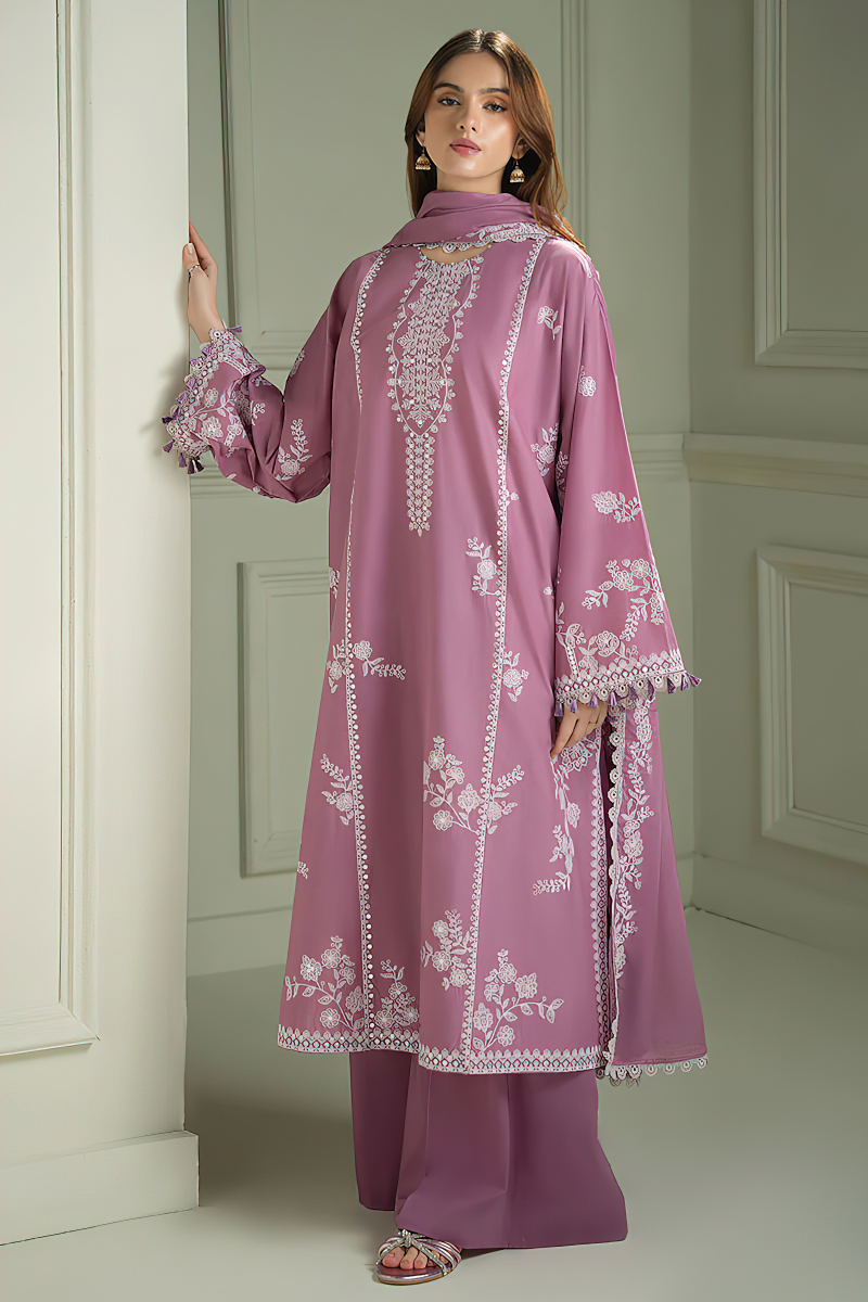 Paired with a ready-to-wear organza dupatta featuring delicate embroidery, this suit offers an elevated and graceful look. The ensemble is completed with a dyed lawn trouser, ensuring comfort, breathability, and effortless elegance.