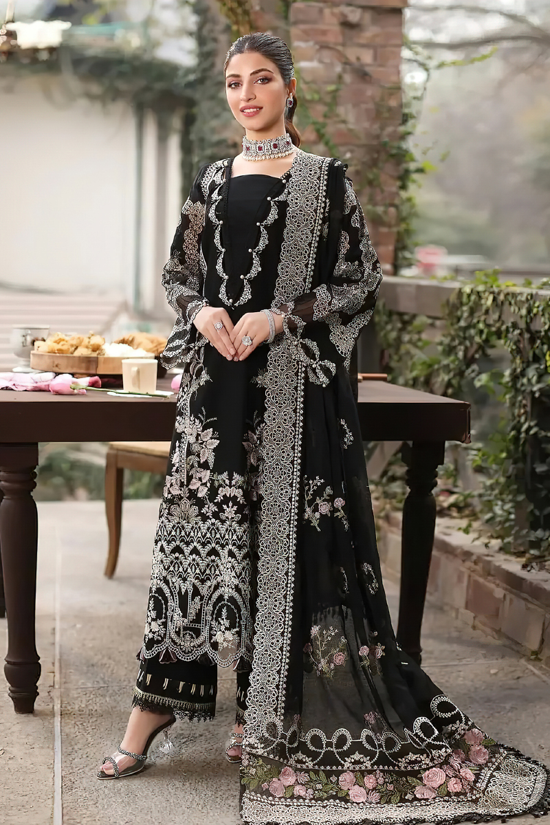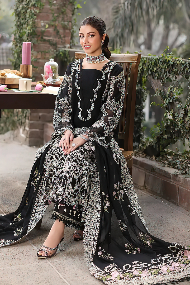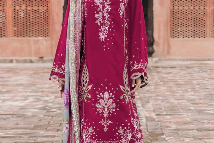 Premium Elaaf summer lawn suit featuring full heavy embroidery with a luxury Bamber chiffon embroidered dupatta. Elegant, breathable, and perfect for summer wear.