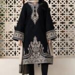 The shirt is beautifully enhanced with double head embroidery, adding a luxurious and refined appeal. Paired with a delicately embroidered Bamber chiffon dupatta, the ensemble offers a light and elegant look. Completing the set is a lawn dyed trouser, ensuring ease of wear and versatility for both casual and semi-formal occasions.