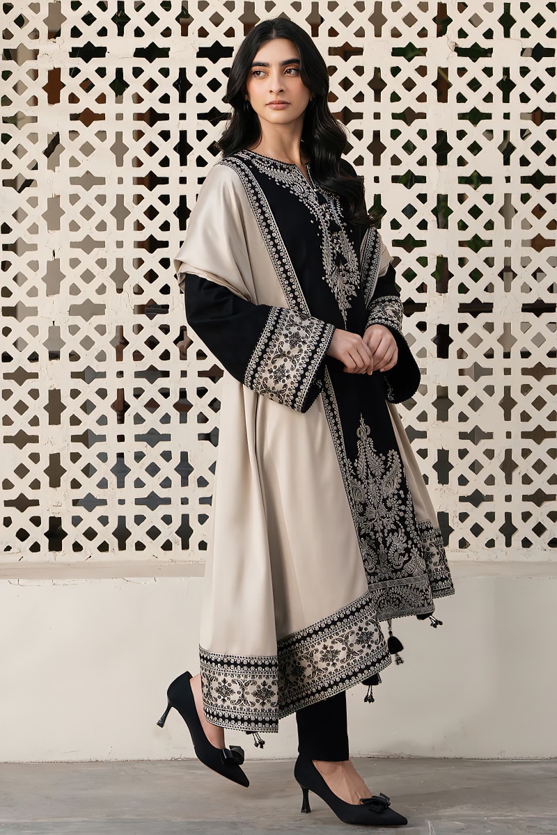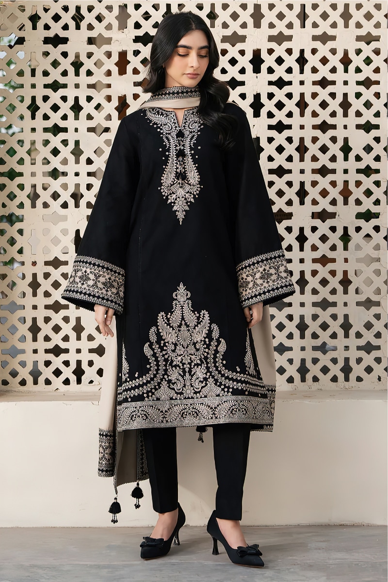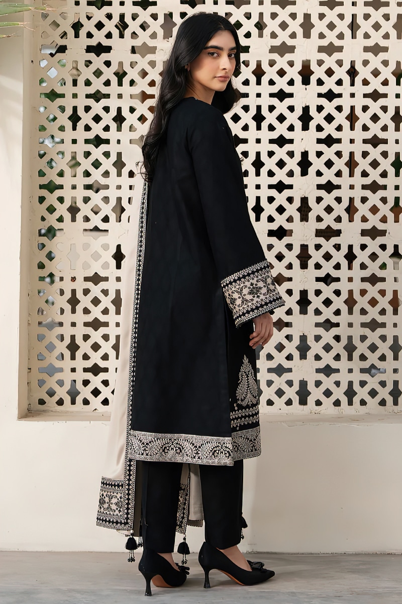 The shirt is beautifully enhanced with double head embroidery, adding a luxurious and refined appeal. Paired with a delicately embroidered Bamber chiffon dupatta, the ensemble offers a light and elegant look. Completing the set is a lawn dyed trouser, ensuring ease of wear and versatility for both casual and semi-formal occasions.