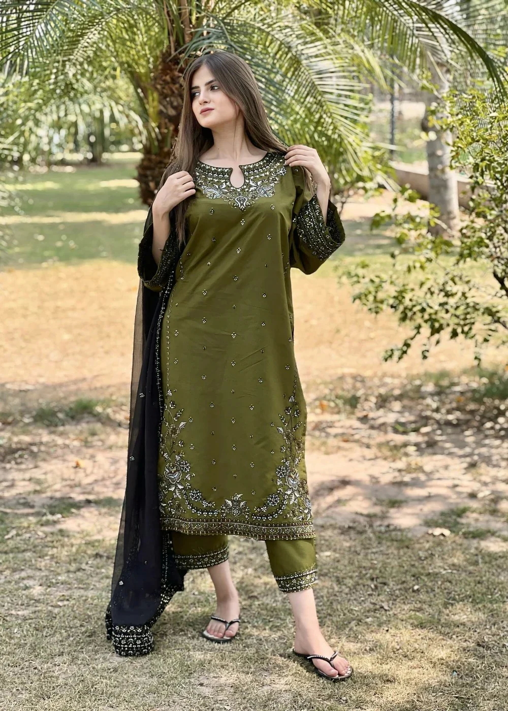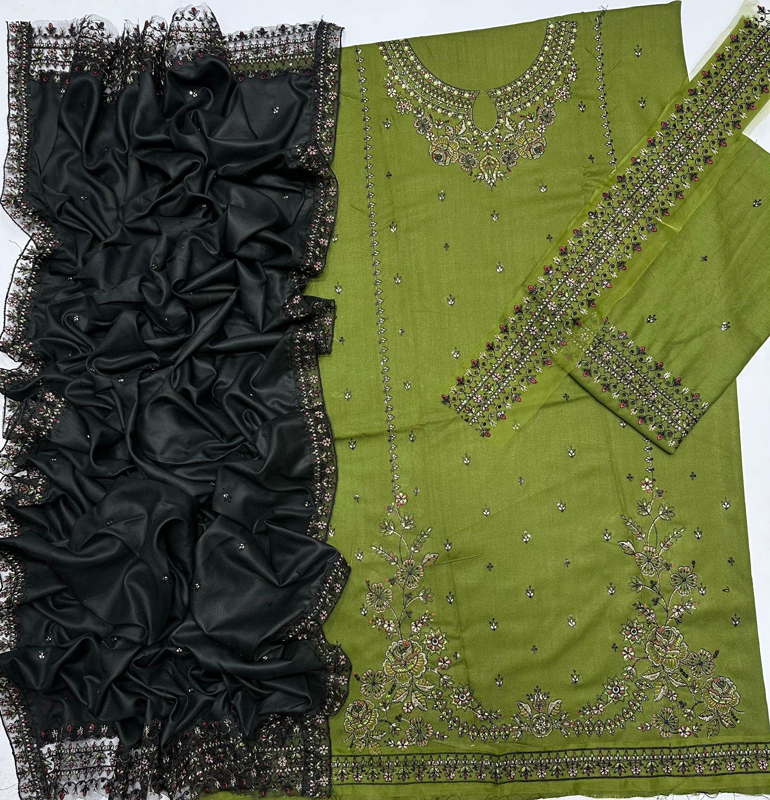 Front full heavy multi-head embroidery with sequence & thread work