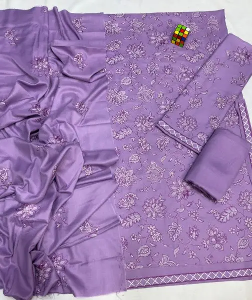 Elevate your winter wardrobe with this exquisitely crafted 3-piece suit made from premium export-quality Airjet Dhanak fabric. Designed for elegance and comfort, it features intricate embroidery for a luxurious finish.